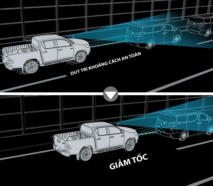 Là công nghệ an toàn chủ động sử dụng ra đa gắn dưới lưới tản nhiệt phía trước cùng với camera để phát hiện các phương tiện phía trước, đồng thời tự động điều chỉnh tốc độ để đảm bảo khoảng cách giữa xe với phiên tiện đang lưu thông