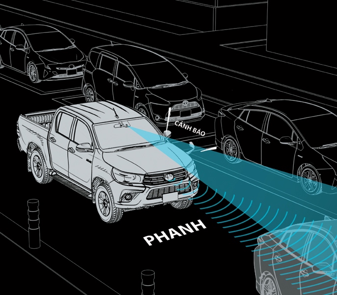 Hilux mới được trang bị tới 6 cảm biến phát hiện vật thể xung quanh ở cự li gần, giúp cảnh báo trước những va chạm đột ngột khi xe lăn bánhThông số kỹ thuật