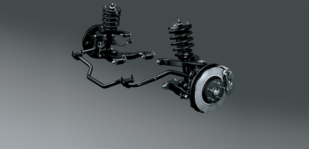 Hệ thống treo với tay đòn kép phía trước và liên kế 4 điểm phía sau nhằm giảm tối đa độ rung lắc, cho cảm giác êm mượt dù trên địa hình gồ ghề